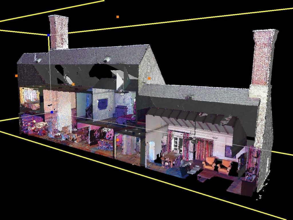 3D laser scanning is very efficient at capturing floors, walls and ceiling of building interiors as well as anything outdoors. From the scan we can quickly generate plan and elevation views that you can use as a basis for various purposes like obtaining permits.